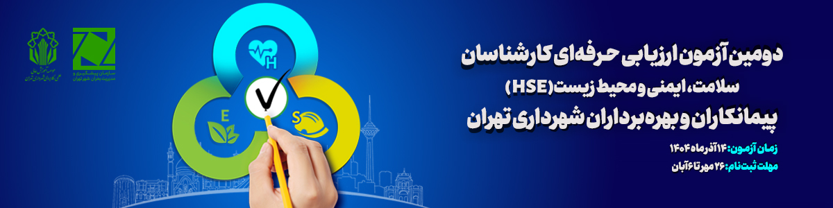 به آگاهی میرسد سازمان پیشگیری و مدیریت بحران شهر تهران در نظر دارد در راستای «اجرای الزامات مصوبه شورای اسلامی شهر تهران با عنوان نظامنامه مدیریت یکپارچه سلامت، ایمنی و محیط زیست شهرداری تهران»، «اجرای ماده 93 قانون کار با هدف نظارت بر حسن اجرای مقررات حفاظتی و بهداشتی در محیطهای کاری و پیشگیری از حوادث و بیماریها»، «بهبود و تسريع فرآيند ارزيابی حرفهاي كارشناسان HSE پيمانكاران و بهرهبرداران شهرداري تهران»، «رفع فرایندهای معیوب»، «ساماندهی و نظارت بر نحوه بهکارگیری كارشناسان HSE شرکتهای پيمانكار و بهرهبردار» و «انتخاب افراد شایسته و واجد صلاحیت جهت فعالیت در شرکتهای پيمانكار و بهرهبردار»، آزمون جامع « ارزیابی حرفهای کارشناسان سلامت، ایمنی و محیط زیست (HSE) پیمانکاران و بهرهبرداران را با همکاری مؤسسه آموزش عالی علمیکاربردی شهرداری تهران برگزار نمايد؛ در اين راستا از متقاضيان دعوت به عمل میآيد، با در نظر گرفتن موارد زیر، اقدام به ثبتنام در آزمون نمايند.